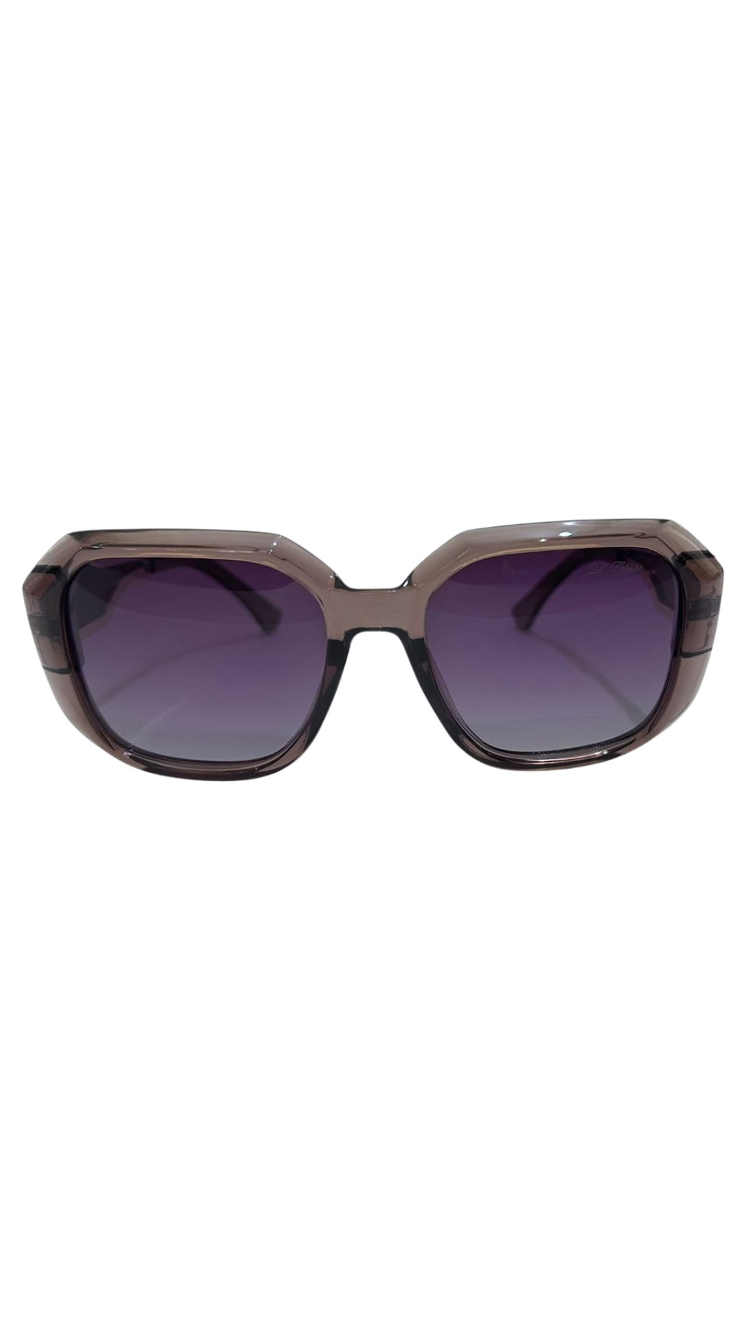 Monture en acétate, avec branches élégantes. Le cadre est de couleur marron clair transparent.